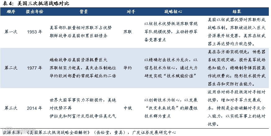 第三次抵消战略加速颠覆性技术转化,坚持军民融合战略。美国在保持军事优势问题上时刻保持前瞻性和危机感。随着中俄军事实力不断增强,美国于2014年推出“以创新驱动核心、以发展改变未来战局的颠覆性技术群为重点”的第三次“抵消战略”,加速了商业市场颠覆性技术向军事系统的转化,继续推进军事和商业技术体系的融合进程。