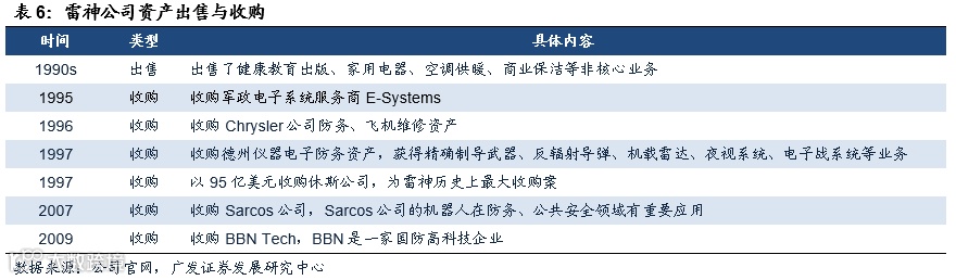 出售民品业务,回归军品主业。20世纪90年代,雷神公司出售了与军工业务关联度较小的民品业务,并连续收购军工资产。