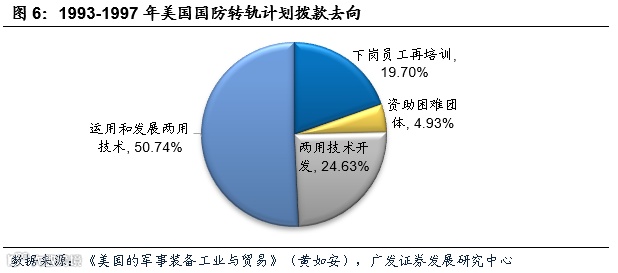 政府出台补助政策,推动军工产能和技术向民用领域转移。军转民是从产能和技术两个层级实现军工向民品的转化。企业开展军转民除了是其根据经营情况而开展的业务调整外,美国政府也给予了经费支持,推动军工产能与技术向民用领域转化。1998年克林顿总统宣布“军转民”五年计划,拨款约200亿美元用于军企裁减人员再培训和补助、开发两用技术和开展技术转让等。