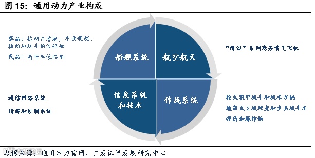 产业涉及四大领域,军用商用并重。通用动力公司的产业分为四大领域,一是船舰系统领域,主要是制造军舰和核潜艇;二是航空航天领域,主要是公务机;三是信息系统和技术领域;四是作战系统领域,主要是攻击性武器的制造。