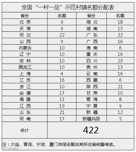 近日,农业农村部办公厅发布《关于开展全国“一村一品”示范村镇认定工作的通知》(以下简称通知),公布了各省示范村镇名额,对全国“一村一品”示范村镇申报条件及认定程序进行了明确的说明。