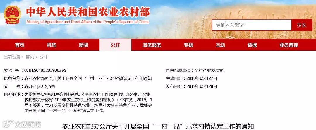 近日,农业农村部办公厅发布关于开展全国“一村一品”示范村镇认定工作的通知。通知内容如下: