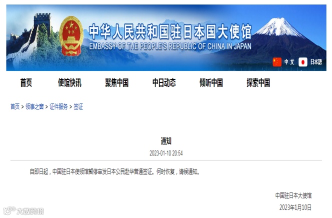 周二晚间,据中国驻日本大使馆官网消息,自即日起,中国驻日本使领馆暂停审发日本公民赴华普通签证。何时恢复,请候通知。