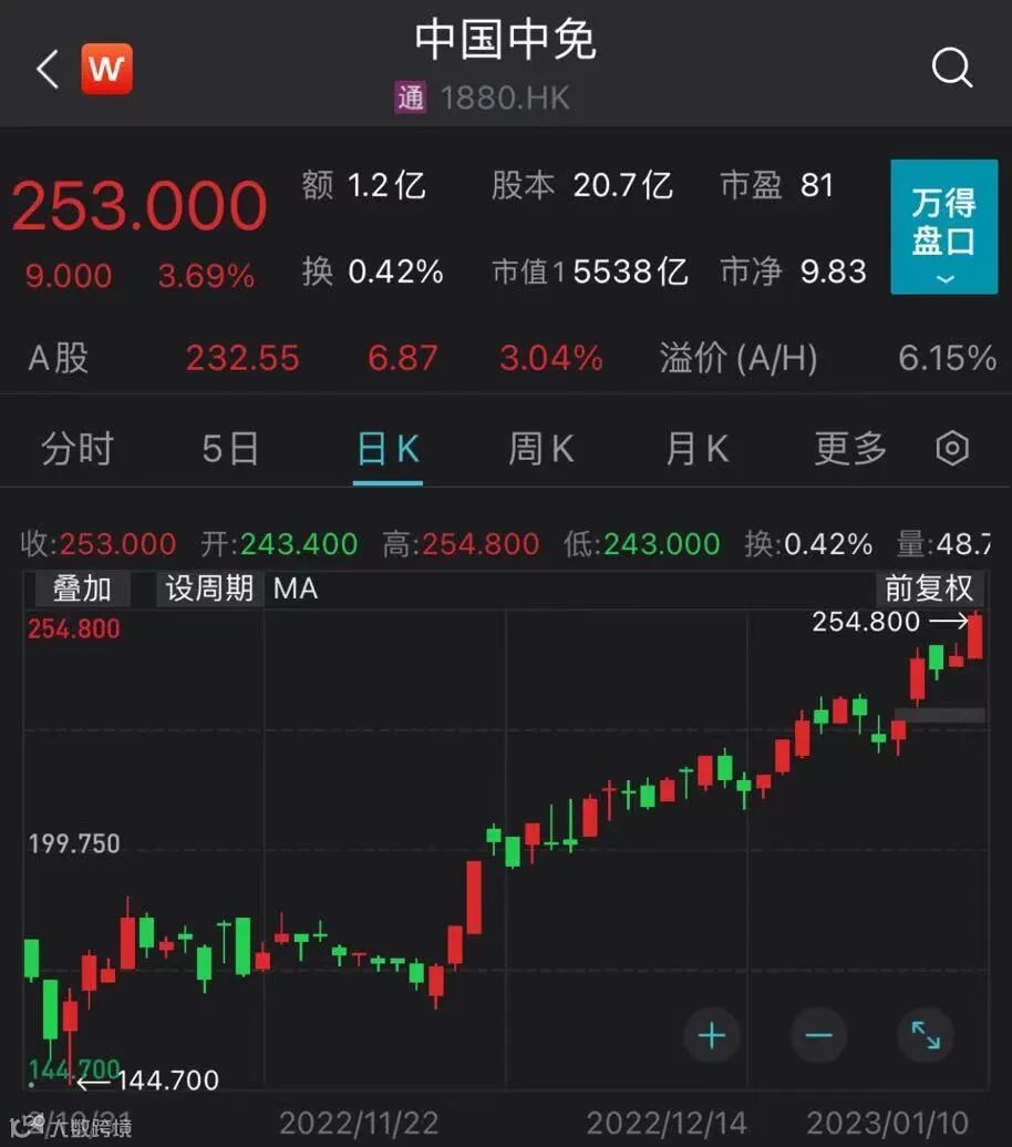 值得一提的是,中国中免H股(1880.HK)盘中一度涨至254.8港元,创历史新高,总市值超5000亿港元。华泰证券研报指出,海南逐渐进入旅游旺季,客流回暖为离岛免税市场迎来了强劲消费增长动力。据海口海关,2023年元旦假期实现离岛免税购物金额4.22亿,日均消费达1.4亿元。该机构认为,海南作为休闲度假目的地具有高度稀缺性,一季度为海南传统旅游旺季,离岛免税步入景气区间,2023年全年客流有望同比大幅修复,带动离岛免税销售额和免税运营商盈利能力双升。