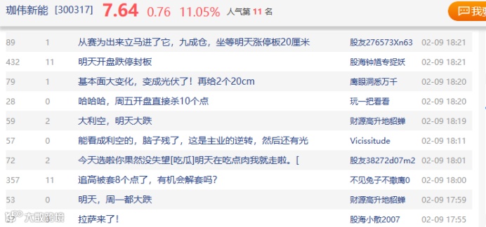 对于珈伟新能这份股价异动公告,股吧投资者两极分化,有投资者“坐等明天涨停板20cm”,有投资者则认为明天开盘跌停。