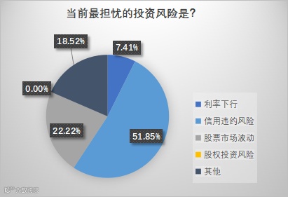 对于当前最为担忧的投资风险,51.85%的保险投资官选择了“信用违约风险”。自2016年证券时报开启中国保险投资官调查以来,信用风险一直是保险投资官最担忧的投资风险。
