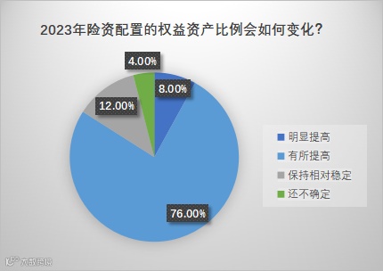 对于保险资金这类长期大资金,资本市场高度关注,特别是其对权益资产的配置举动。根据本次调查,2023年险资对权益资产的投资比例大概率会“有所提高”。