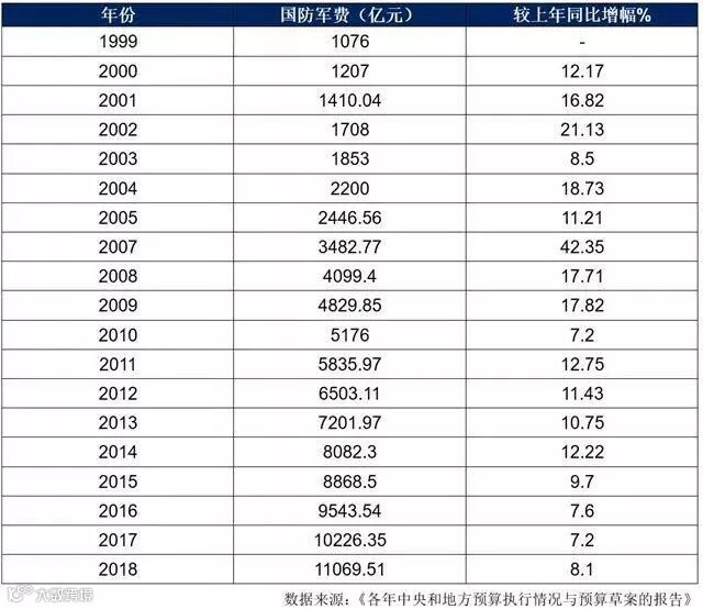 纵观我国近十年军费开支变化和增速,军费开支逐年增长,增速变化起伏不定。2018年根据财政部预算草案,国防支出预算将增长8.1%,是2014年以来首次触底回升,且这是在财政收入预算增速明显进一步放缓的条件下达到的,表明财政对于国防军工这一块的高度重视。十九大指出:“确保到2020年基本实现机械化,信息化建设取得重大进展,战略能力有大的提升。”“力争到2035年基本实现国防和军队现代化,到本世纪中叶把人民军队全面建成世界一流军队。”本次军改标志着中国的国防建设正站在新的历史起点,是中国多军种实现战略转型的战略期,预计2019年军费将在2018年基础上实现理性增长。