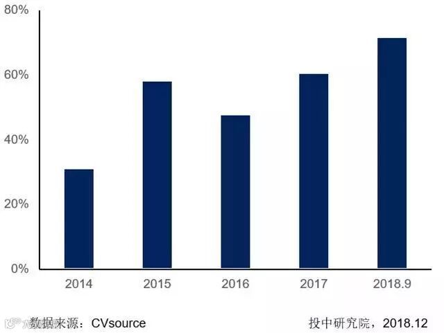 图17:2014-2018Q3参与并购的军工民营企业占比(被并购方)