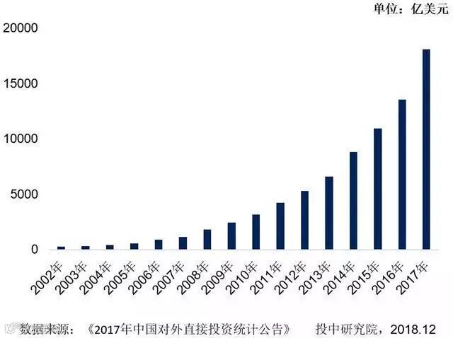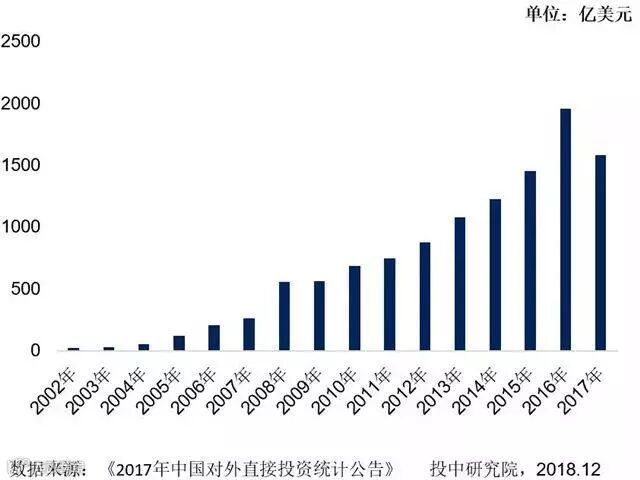 《2017年中国对外直接投资统计公告》中表示,2017年中国对外投资下降是由于中国政府加强对企业对外投资的真实性、合规性审查,市场主体对外投资更趋成熟和回归理性,中国企业对外投资增速放缓,结构进一步优化。但2017年对外直接投资1582.9亿美元仍为历史第二高位(仅次于2016年),是2002年流量的58.6倍,占全球比重连续两年超过一成,中国对外投资在全球外国直接投资中的影响力不断扩大。从双向投资情况看,中国对外直接投资流量已连续三年高于吸引外资。