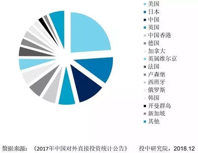 图6:2017年全球主要对外投资国家(地区)流量占比情况