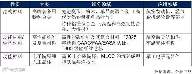 新材料技术是军事高科技领域的六大技术(信息技术、新材料技术、航天技术、新能源技术、生物技术和海洋技术)之一,同时也是军民两用性适用度最高、发展活力最活跃的领域之一。我国军工武器装备目前正在高精尖化、智能化和信息化角度推进,新材料未来在国防领域的需求越来越大。而同时民用领域高新技术产品也需要在重量、功耗方面具有更高的市场需求,因此新材料技术的演进对于军民融合而言不啻为一个活跃领域。而从材料用途上划分,新材料可以被划分为结构材料和功能材料两类,结构材料具有良好的力学性能,主要用于武器装备的结构零部件。而功能材料是指具有良好的声光电热磁特性的材料,主要用于武器装备方面的隐身、抗热磁、降噪和抗腐蚀等领域。