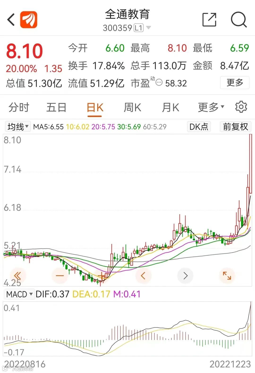职业教育板块早间略微低开后快速上攻,涨逾3%,半日成交接近昨日前天成交。全通教育直线拉20%涨停,股价创2年来新高;世纪鼎利、华媒控股、国脉科技、中广天择等亦涨停或涨超10%。