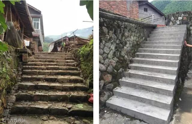 原有石砌台阶被水泥抹面