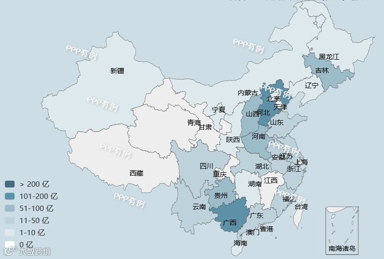 按投资规模排序,前三位是河北、广西和山西,分别为175亿元、155亿元、91亿元。