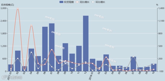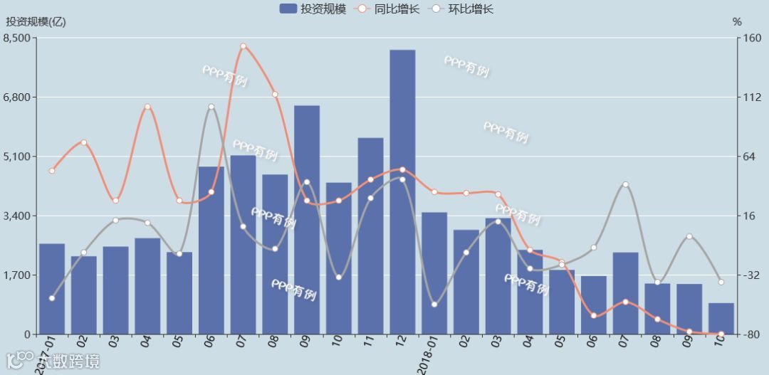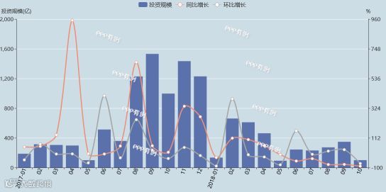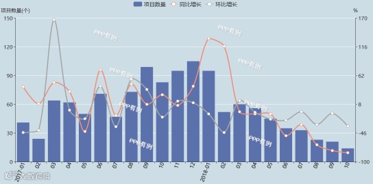 2018年10月,全国城镇综合开发领域PPP项目总体投资规模为100亿元,同比减少90%,环比减少71%。