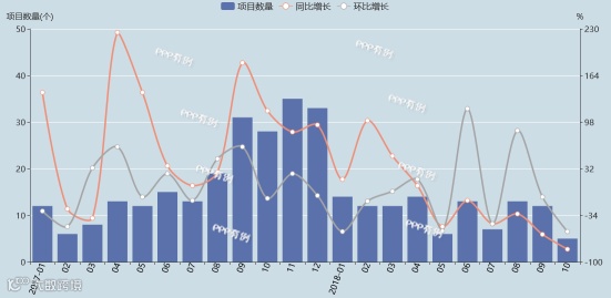 2018年10月,全国城镇综合开发领域PPP项目总体成交数量为5个,同比减少82%,环比减少57%。