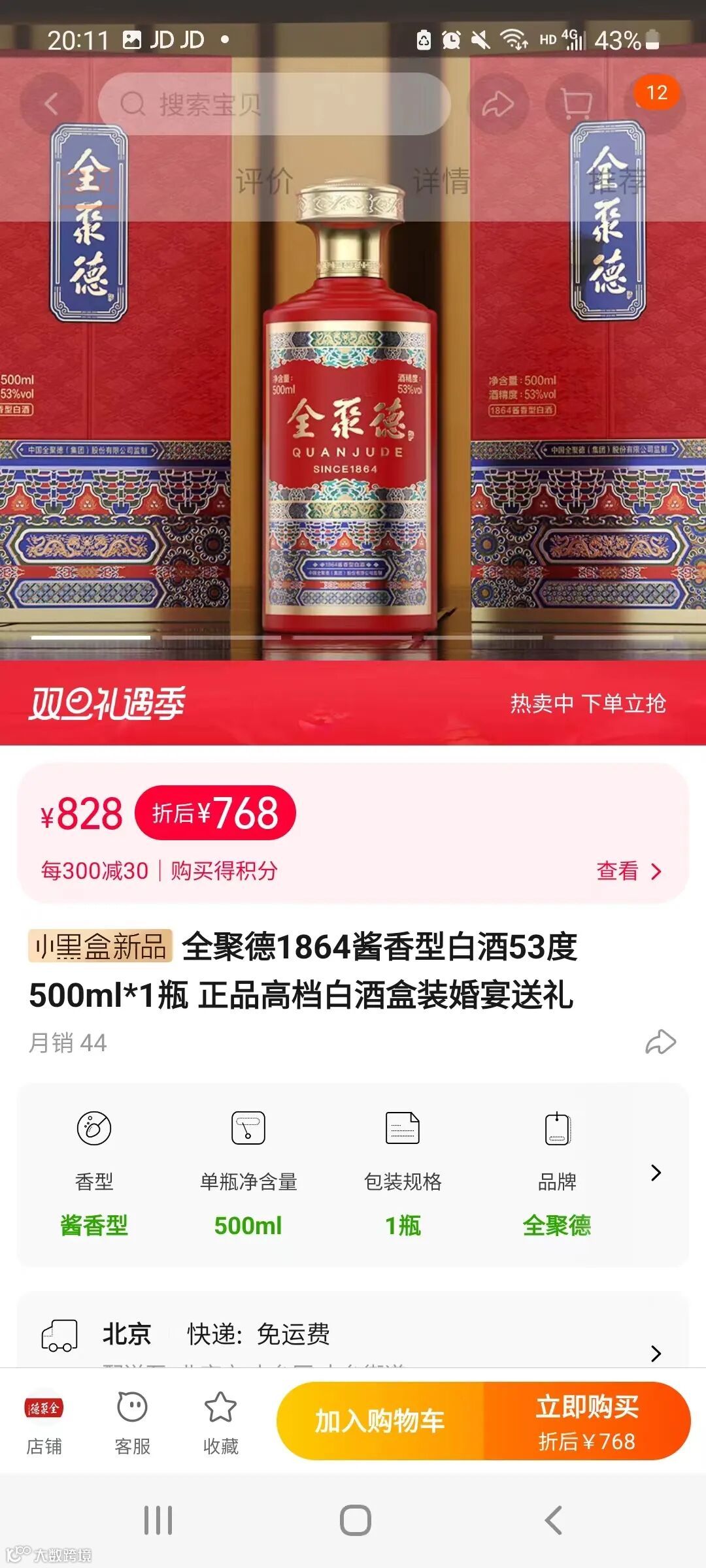 值得一提的是,近期,全聚德上架了两款自主品牌的酱香型白酒,售价分别为828元和568元。