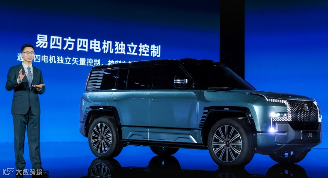 在本次发布会上,仰望品牌首款定位百万级新能源硬派越野U8正式亮相,该车长超过5 米,车宽超过2米,造型偏硬朗。同时,新车搭载了“易四方”技术,可挑战各类复杂的越野场景。