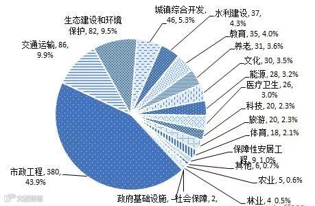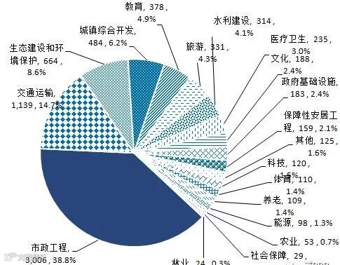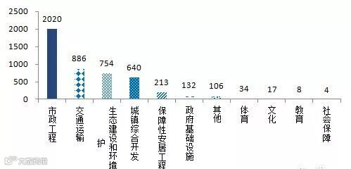 二季度新增投资额前三位是市政工程、交通运输、生态建设和环境保护,分别为2,020亿元、886亿元、754亿元,合计占管理库新增总投资额的84.1%,如图1-4-2。
