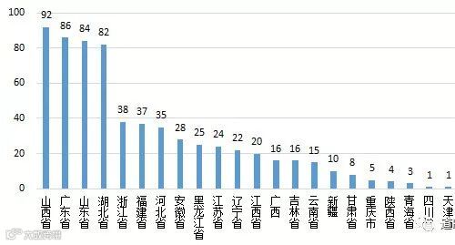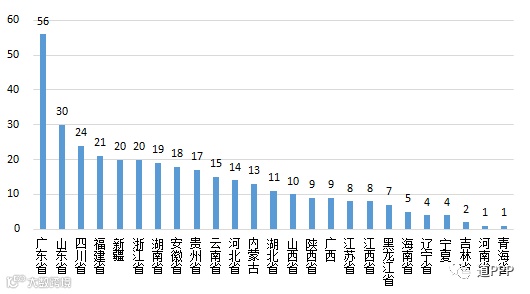 图1-3-1 二季度管理库新增项目数地区分布(个)