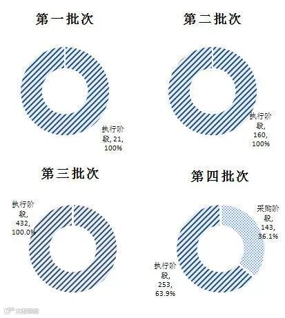 第一批21个示范项目自2016年底以来、第二批160个示范项目自2017年3月以来已100%落地,第三批432个示范项目本月100%落地。第四批示范项目中落地项目253个,落地率63.9%。四批示范项目各自落地率如图2-2-2。