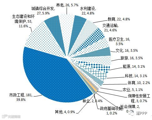 管理库共包括能源、交通运输、水利建设、生态建设和环境保护、市政工程、城镇综合开发、农业、林业、科技、保障性安居工程、旅游、医疗卫生、养老、教育、文化、体育、社会保障、政府基础设施和其他19个一级行业。示范项目及落地示范项目涵盖全部19个行业。