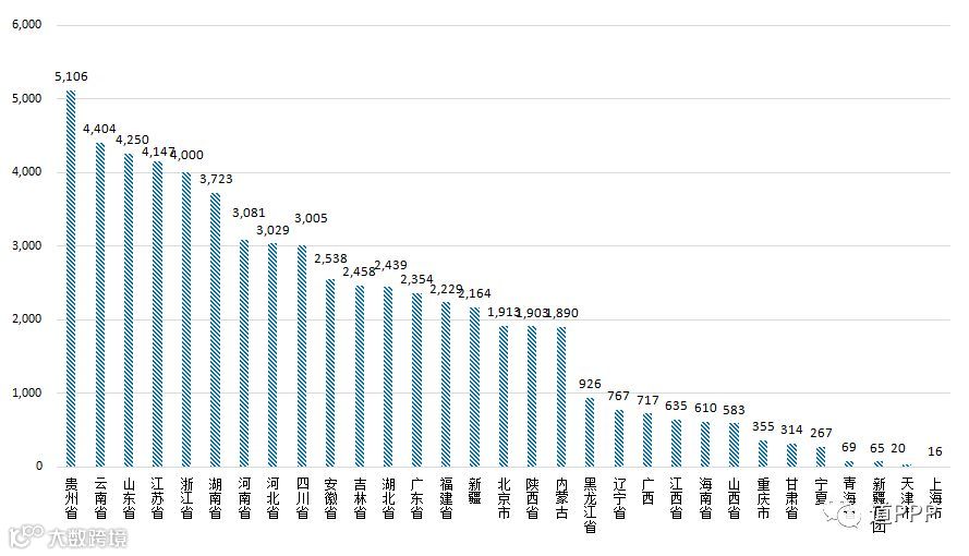 截至2018年6月,累计已开工示范项目总数450个,开工率52.0%。如图2-6,安徽和山东(含青岛)开工示范项目数同为51个并列第一,云南43个居第三位,占其各自落地示范项目数的比例分别为92.7%、69.9%、69.4%。