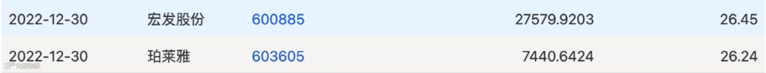 来自上交所的数据显示,截至12月30日,宏发股份和珀莱雅外资持股比例超过24%。