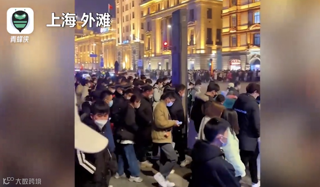 2022年12月31日晚,上海南京路步行街跨年夜游客人头攒动,网红“武警拉链式过马路”再次上岗,保护游客安全,成为寒冷的冬夜里最暖的风景线。
