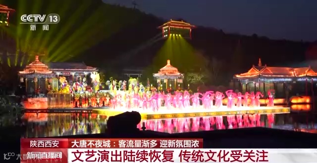 伴随着烟火气的恢复,包括大唐不夜城在内的西安多地,各种演出正在有序恢复。比如在西安华清池,实景演出的《长恨歌》已经第一时间复演,西安文旅复苏按下“快进键”。而在大唐不夜城,“长安十二时辰”、各类音乐主题演出、杂技演出、诗词互动在整个街区轮番上演。而这些活动有两个特点,一是传统文化居多,比如,以唐代著名诗人李白为形象代表,从光影、演绎等方面再现历史人物,让观众仿佛置身于唐代;二是更加注重沉浸式体验盛唐文化,比如,在诗词互动环节,表演者将诗词文化的魅力通过与市民游客互动的形式进行传递,通过互动更好地发扬中华传统文化。
