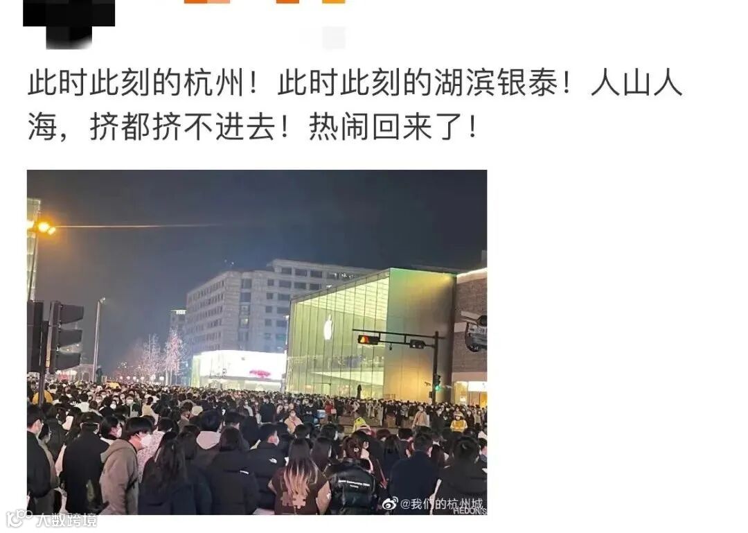 而在杭州,据钱江晚报,杭州湖滨步行街人头攒动。
