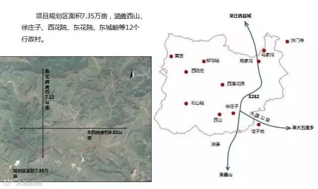 试点项目所在地东莲花院乡地处迁西、迁安、滦县、丰润四县交界处,距京沈高速20公里,距迁西县城30公里,距在建的京秦高速仅仅5分钟车程,位于环首都2小时经济圈内,区位和交通优势明显。项目规划区总面积7.35万亩,涵盖西山、徐庄子、西花院、东花院、东城峪等12个行政村。项目总投资17.2亿元,建设期为三年,总计可获财政资金支持2.1亿元,同时可撬动社会资本10亿元。