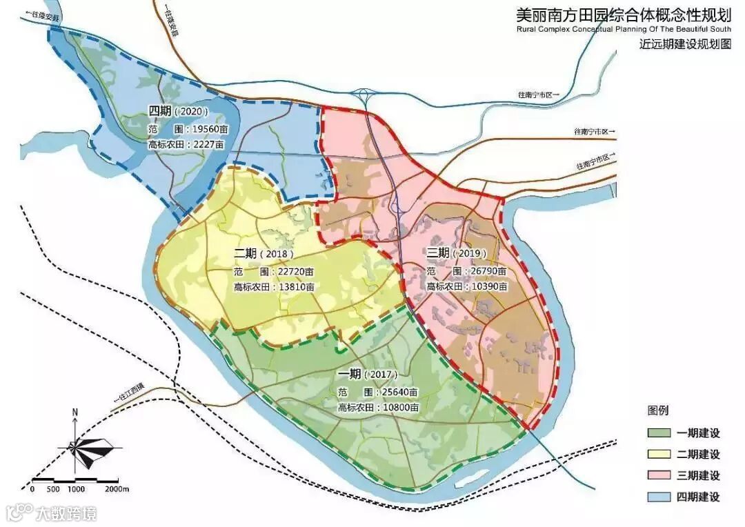 美丽南方田园综合体位于南宁市西乡塘区石埠半岛,范围包括金陵镇的兴贤村和石埠街道办事处的忠良村、永安村等,综合体规划面积69.57平方公里,其中耕地面积6.2万亩,农业人口5.6万人。目前,规划区有自治区级现代特色农业示范区3个,入驻企业60多家,各级财政资金累计投入近8亿元,吸引社会资本投入18亿元,主要投入项目建设和产业发展,建成了龟鳖养殖加工生产、葡萄种植及葡萄酒生产、青瓦房民俗风情古村落体验等生态农业、休闲农业、创意农业项目48个,面积8000亩。