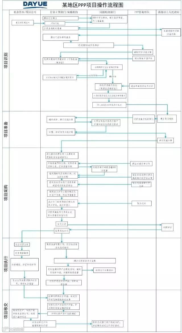 国家倡导政府与社会主与资本合作(PPP)模式时间已经不短,2014年以来财政部出台了若干文件来指导PPP项目具体的操作,但是实际工作中不少从业人员对操作流程还不是很清楚。一下是一张结合财政部“财金 〔2014〕113号”、“财金〔2016〕92号”的项目结构图,本图为采用VISIO绘制的跨职能流程图,比较直观,便于查阅。