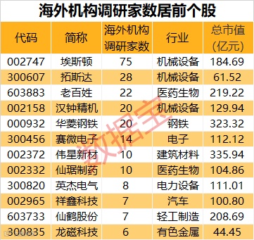 分行业来看,海外机构最看好医药生物、机械设备、电子三个行业,调研上市公司家数居前,分别达到11家、9家、8家。