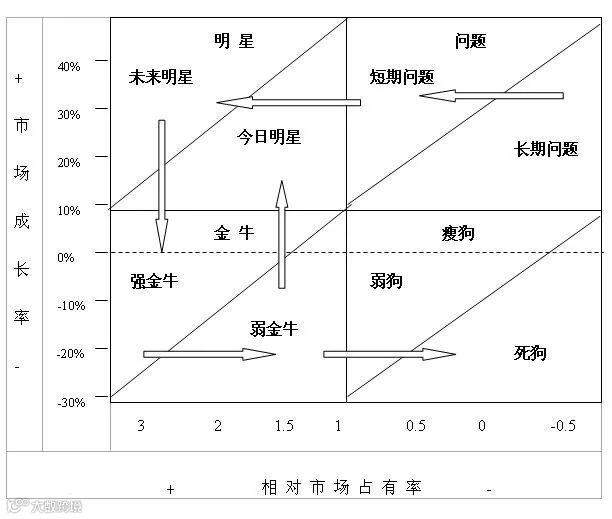 确定产业集群发展潜力:需分析产业上下游关联度、未来市场前景、产业政策匹配度、所需资源匹配度等问题,常用波士顿矩阵图(BCG Matrix)确定。