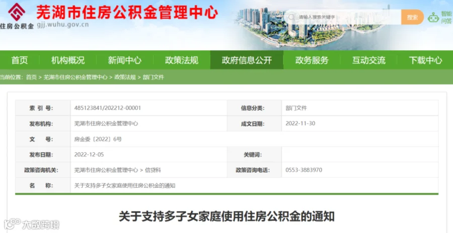 12月5日,芜湖市住房公积金管理中心发布《关于支持多子女家庭使用住房公积金的通知》。