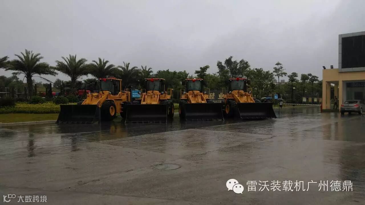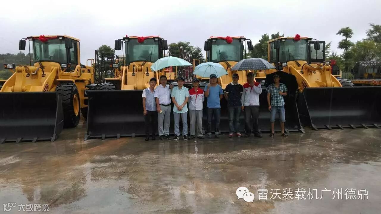 2015年8月15日,我公司与河源市华远建材投资有限公司交车仪式在河源市东源县举行。我公司为河源市华远建材投资有限公司提供的首批4台雷沃FL955F-ETX+正式投入使用,河源市华远建材投资有限公司在当地是矿山和投资行业中的佼佼者,在当地有着一定的影响力及口碑,在交车当天,粤东的河源市细雨蒙蒙,绵绵的细雨柔和的滴在人们的脸上,人们是无比的欢喜,它又轻轻的落在崭新福雷沃装载机FL955F-ETX+上,象是在装扮着出征的战士,今天无疑是个风调雨顺的好日子,4台威武的“雷沃FL955F-ETX+”在雨水的装扮下整装待发!