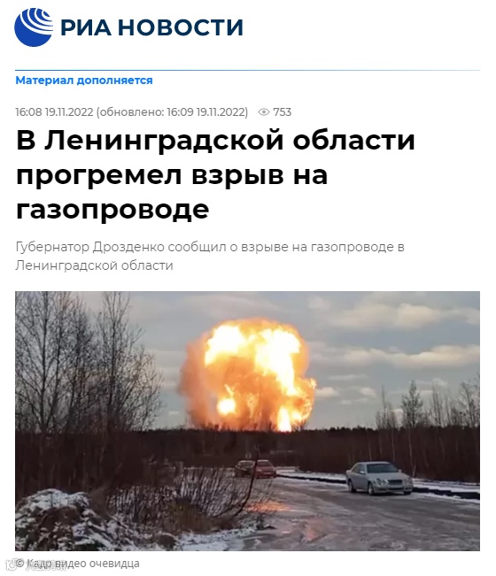 另据俄新社19日报道,列宁格勒州州长德洛兹坚科称,该州一条天然气管道发生爆炸,引发火灾。报道还称,德洛兹坚科称,爆炸原因正在调查中。