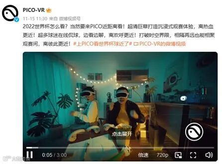 字节跳动则是在抖音上线了“一起猜世界杯冠军、瓜分千万现金”之外,还通过去年收购的国内VR行业出货量最大的软硬件研发制造商PICO,上线了“上PICO看世界杯球近了”活动。