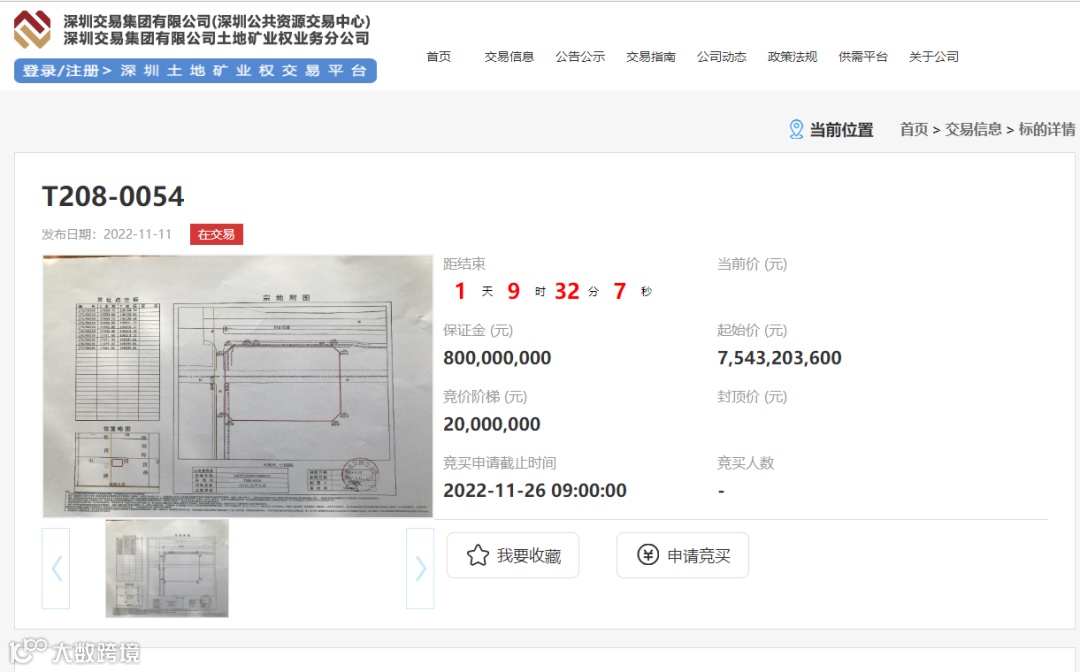 据悉,该地块起始出让价约75.43亿元,起拍保证金高达8亿元,竞买申请截止时间为11月26日9时。