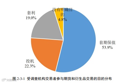 从机构交易者采用期货进行套期保值的持仓情况来看,45.0%的机构交易者的期货持仓小于现货持仓,30.3%的机构交易者的期货与现货持仓基本持平,24.7%的机构交易者的期货持仓大于现货持仓。