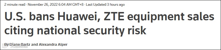 据观察者网,当地时间周五(11月25日),美国联邦通信委员会(FCC)宣布,禁止华为、中兴通讯、海康威视、海能达和浙江大华五家公司在美国销售设备。FCC称这五家的产品“对美国国家安全构成不可接受的风险”。FCC此举的依据是其于2019年颁布的一项旨在保护美国通信网络安全的法律。