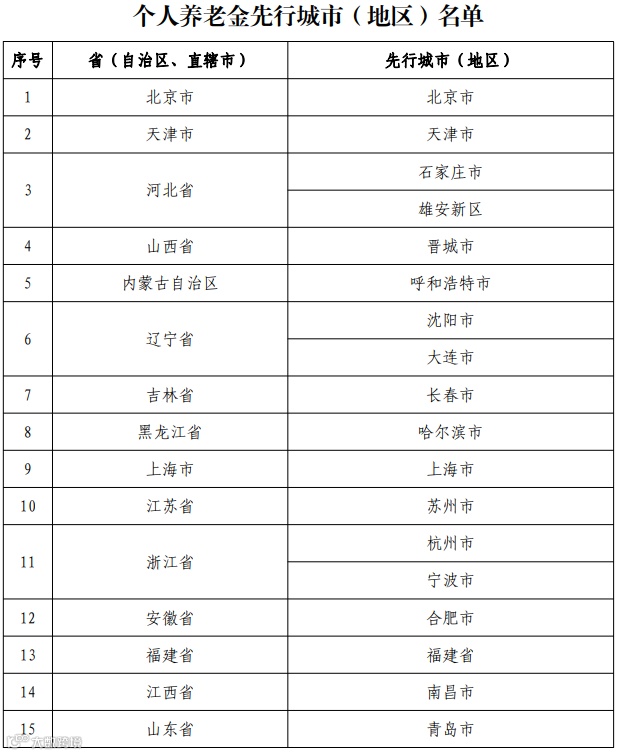 《公告》明确,公告规定的税收政策自2022年1月1日起在个人养老金先行城市实施。上海市、福建省、苏州工业园区等已实施个人税收递延型商业养老保险试点的地区,自2022年1月1日起统一按照公告规定的税收政策执行。