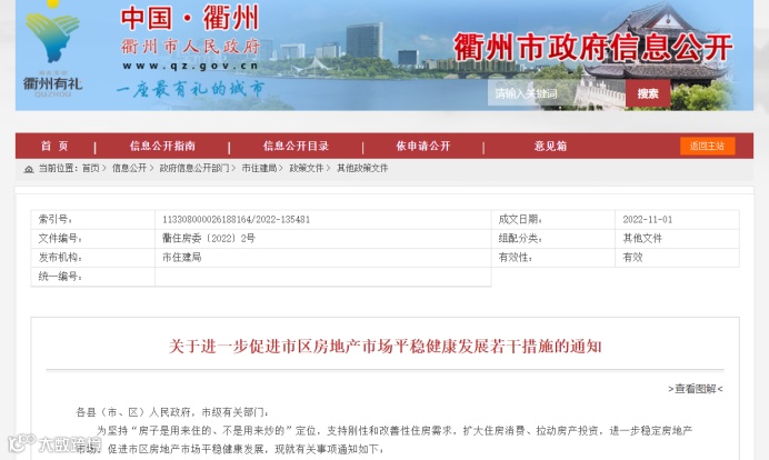 11月1日,衢州市城乡住房工作协调委员会发布《关于进一步促进市区房地产市场平稳健康发展若干措施的通知》,其中提出,开展团购活动补贴,推动城市人口集聚,支持大学生安居。