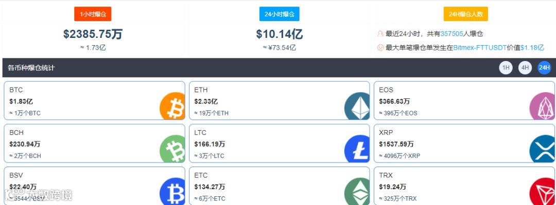 投资者的损失亦极为惨重,过去24小时,共计有超过35万投资人爆仓,爆仓金额超过73亿元人民币。