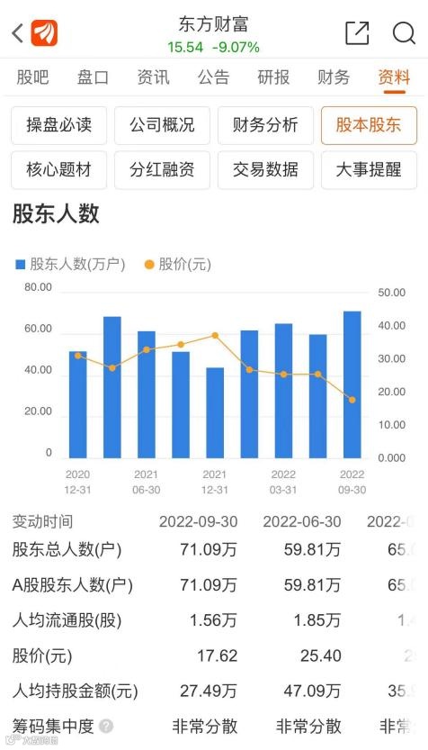 股东户数方面,截至9月30日,持有东方财富的股东户数达到71.09万,相比半年报增加了11.28万户,增幅达到18.86%,意味着筹码更加分散。