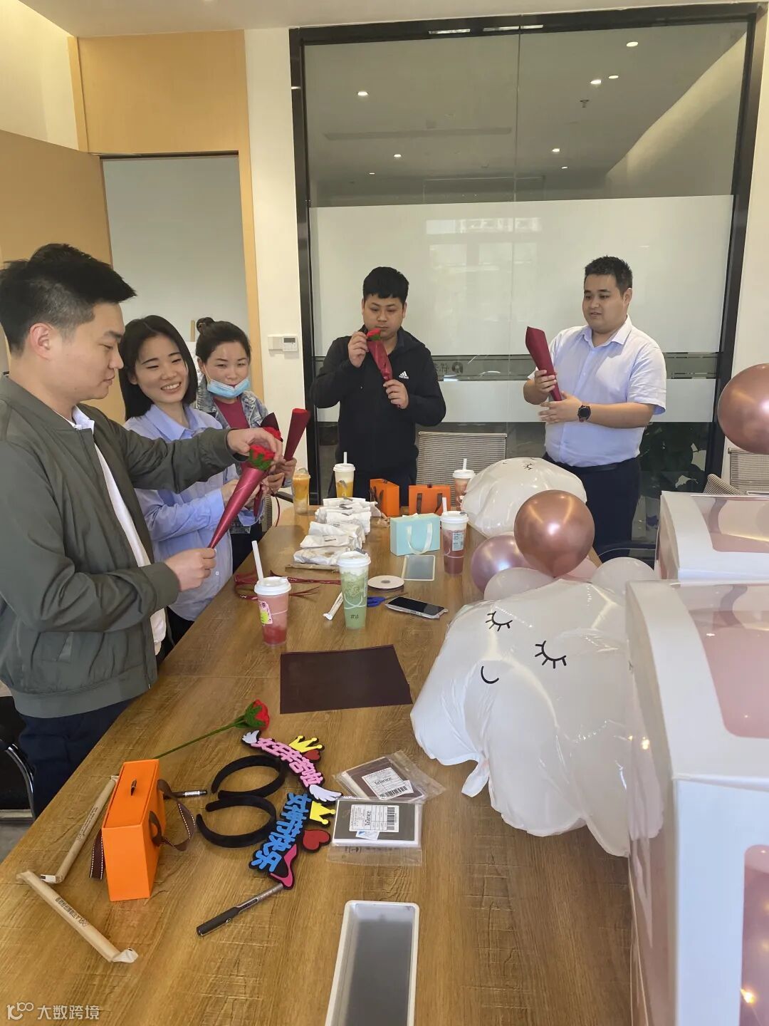 深圳公司开展三八女神节活动,男同事们纷纷包扎永生花送给女神们,愿女神们永远美丽。