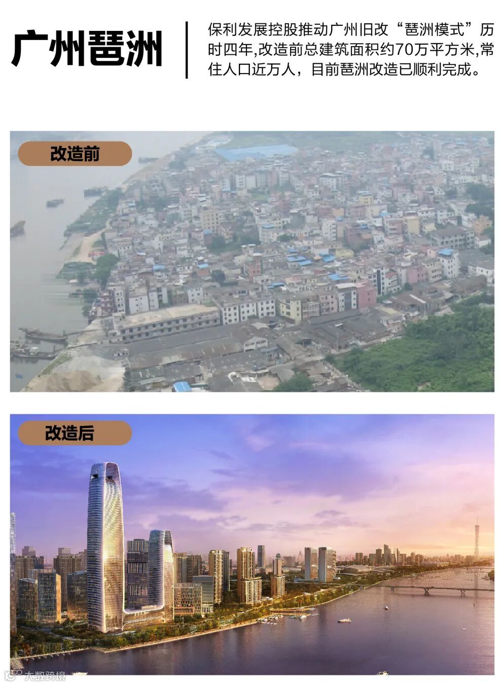 (广州琶洲改造前后对比图)